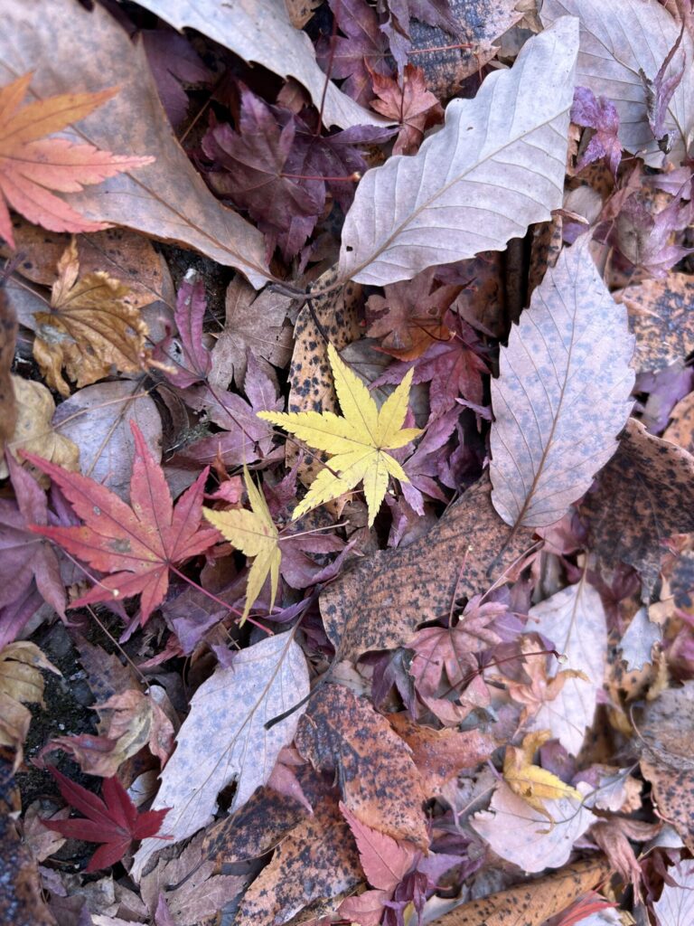 道の脇には、落ち葉がたくさん積もっていて、紅葉も終わりに近づいているように感じました。