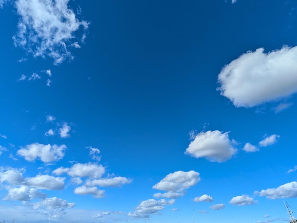散歩の道中、清々しい空を見て、なんだか気持ちが軽くなりました。